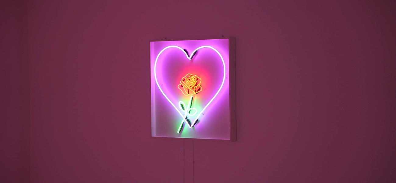 Love that never fades–a rose of light beating within a heart,forever alive in electric bloom.